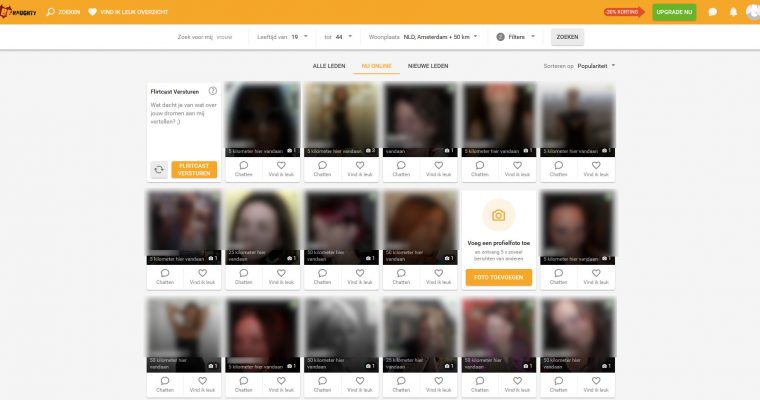 Op BeNaughty.com vind je heel veel profielen van mensen die graag een spannend contact willen hebben met gelijkgestemde mensen. De site staat bol van de activiteit en je zit hier dus nooit snel om een leuke chat verlegen. Je kunt snel matchen op basis van je interesses en voorkeuren, of zelf handmatig op zoek naar de leukste profielen voor jou. Chatten kan gewoon heel discreet via de website. De site is volledig in het Nederlands te gebruiken en je komt dus ook eenvoudig met profielen uit je eigen regio in contact. Maar aangezien het om een internationaal platform gaat is het ook mogelijk om spannende contacten met profielen uit andere landen te vinden.